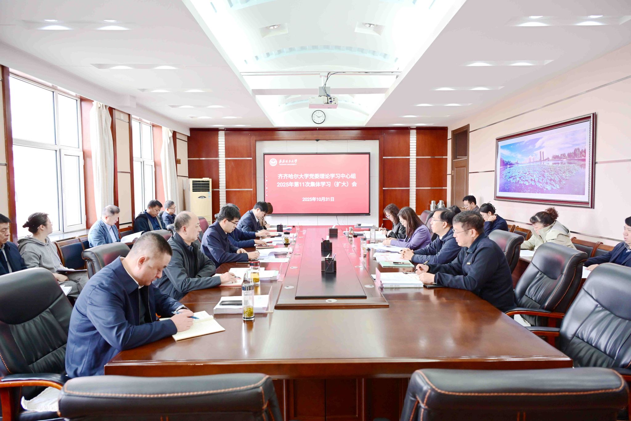 10月31日上午,學校黨委理論學習中心組在辦公樓504會議室召開2025年第11次集體學習(擴大)會,專題學習研討黨的二十屆四中全會精神。校黨委書記丁宏主持會議并講話。會上,與會同志集中學習了習近平總書記在黨的二十屆四中全會上所作的報告和重要講話精神、習近平總書記《關于<中共中央關于制定國民經濟和社會發展第十五個五年規劃的建議>的說明》《中共中央關于制定國民經濟和社會發展第十五個五年規劃的建議》。副校長、黨委...